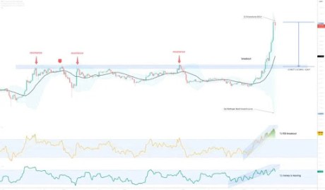 The analyst has revealed that 95% of price actions occur within the bands. Hence, prices outside the Bollinger bands often signal a pullback or correction toward the mean point at $0.73. Moreover, he noted that the bands are curving inwards, suggesting that XRP buyers may be exhausted, increasing the likelihood of a price reversal.