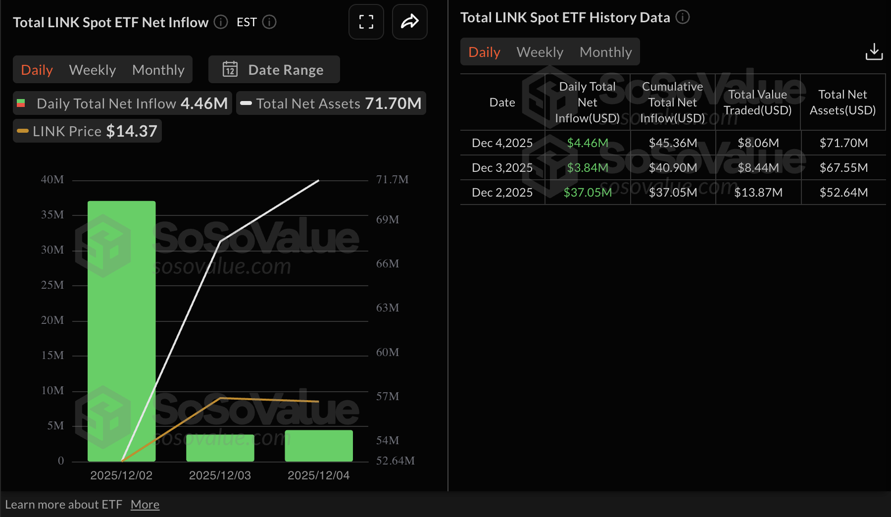 LINK ETF-Statistiken | Quelle: SoSoValue