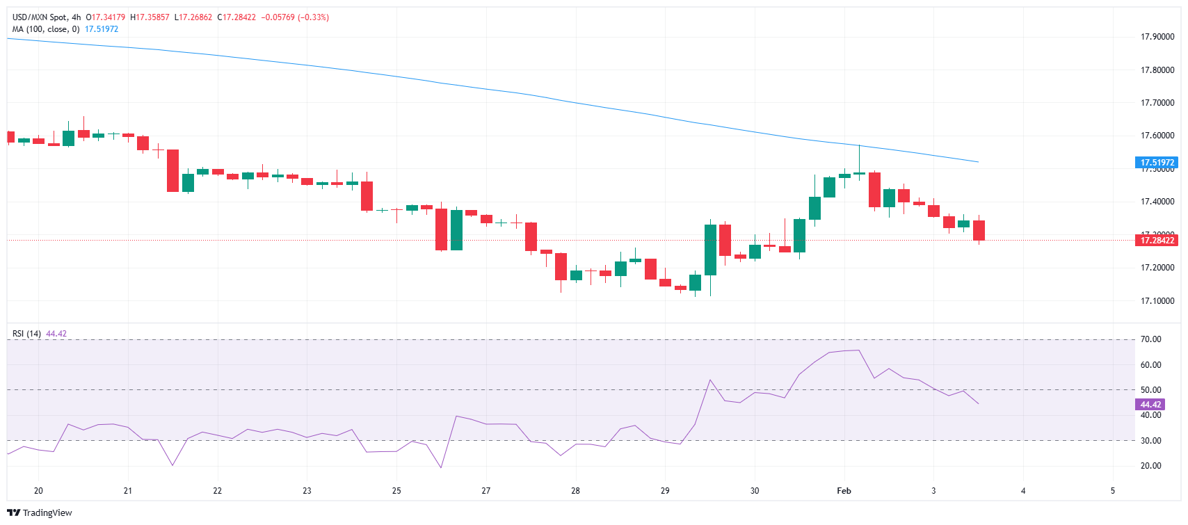 El USD/MXN ha abierto el martes subiendo a un máximo diario de 17.40, pero al inicio de la sesión americana ha retrocedido a mínimos de dos días en 17.26. Al momento de escribir, el par cotiza sobre 17.27, perdiendo un 0.70% en lo que llevamos de jornada.