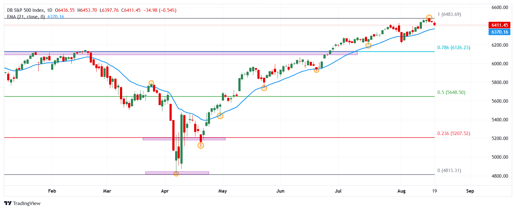 El S&P 500 reaccionó a la baja desde un máximo diario en 6.453, encontrando vendedores que arrastraron el índice a mínimos del 12 de agosto el 6.397. En estos momentos, el S&P 500 opera sobre 6411, cayendo un 0.54% en el día.
