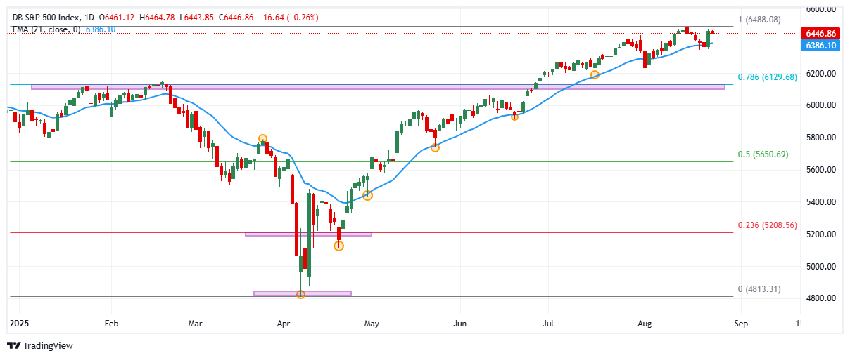 El S&P 500 retrocede 16 puntos el día de hoy, consolidándose dentro del rango operativo de la sesión previa en 6.447.