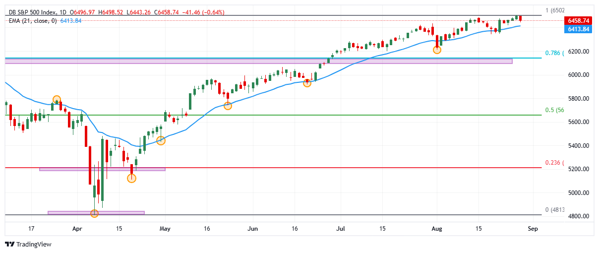 El S&P 500 retrocede un 0.64% diario, alcanzando mínimos del 26 de agosto en 6.443.