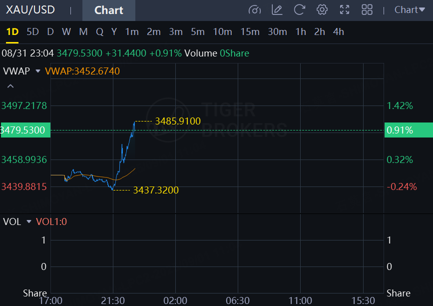 Spot gold rose nearly 1% to 3,479.53/oz as traders weighed the future of the Federal Reserve and uncertainty around US President Donald Trump’s tariffs ahead of key US jobs data due later this week.