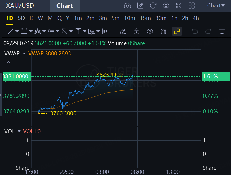 Spot Gold Continues To Rise, Surpasses $3,820/Oz, Hitting A New High With Intraday Gain Over $60