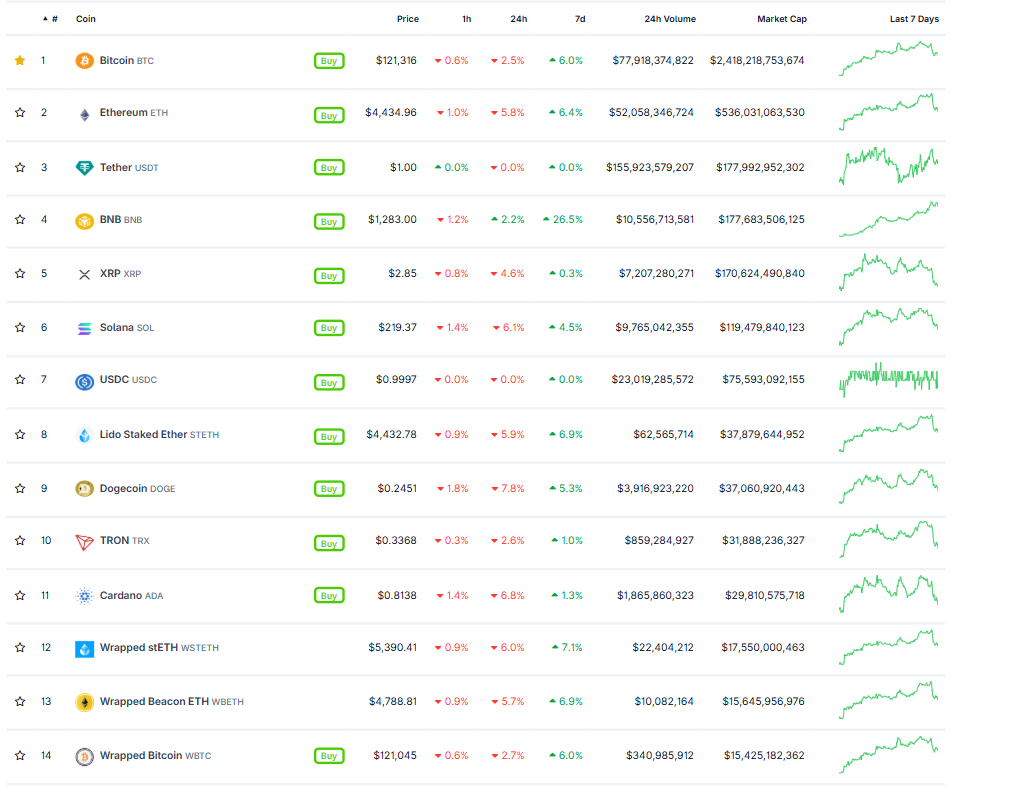 At the time of writing on Wednesday, the cryptocurrency market remains in the red, with major tokens, including Ethereum (ETH), Ripple (XRP), Cardano (ADA), and popular memecoins, experiencing notable price declines, as shown in the image below.