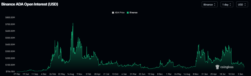 Cardano’s futures OI on the Binance exchange dropped to $65.95 million on Monday, the lowest level since the end of September 2024, and has been steadily falling since mid-January 2026. This drop in OI reflects waning investor participation and projects a bearish outlook.