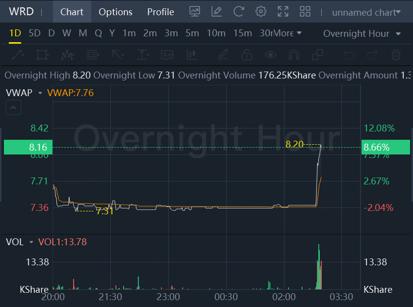 WeRide shares jumped 8.7% in overnight trading.