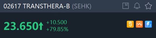 On debut today, Biopharmaceutical company TransThera soared 80% in Hong Kong.