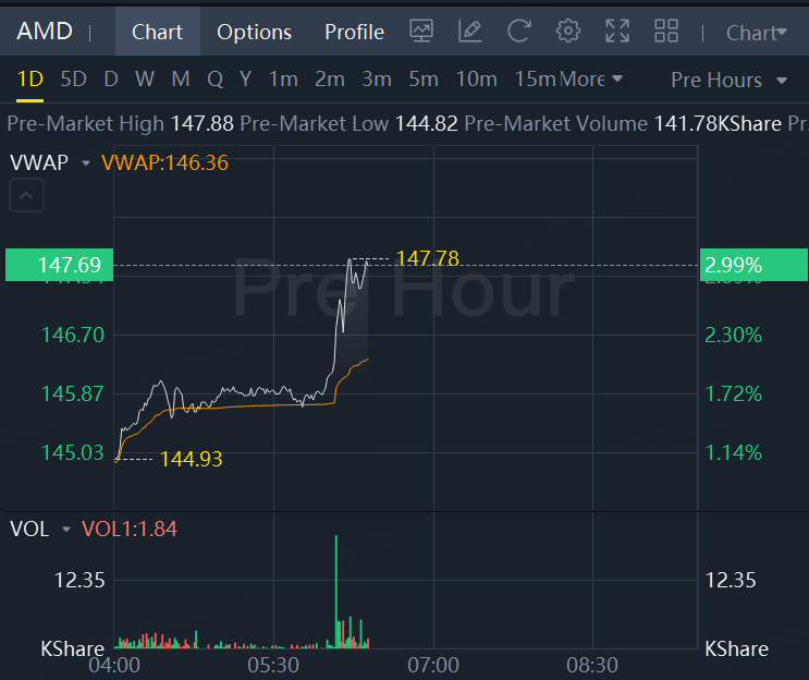 AMD stock jumped another 3% in premarket trading. Shares have gained about 30% in June.