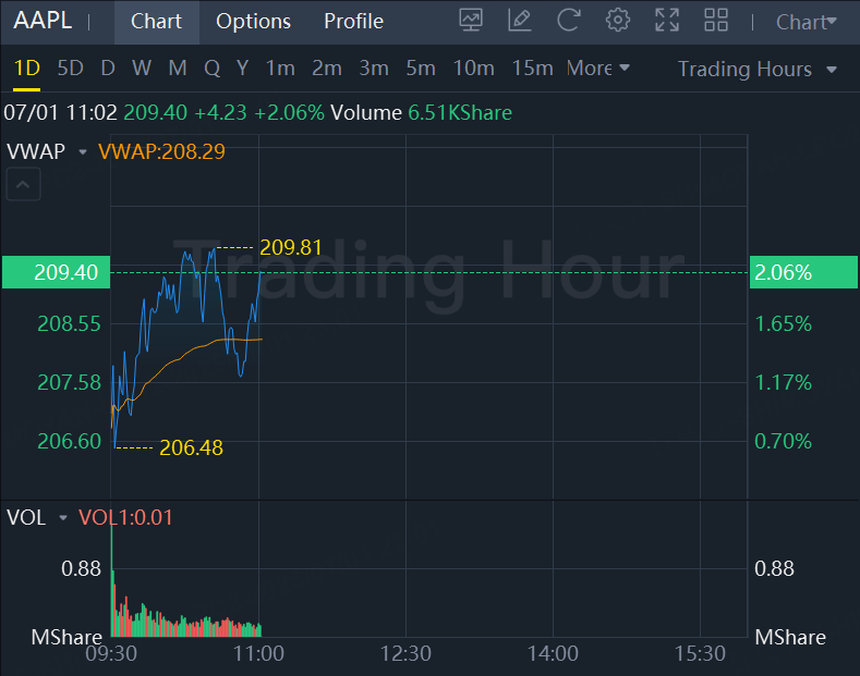 Apple Shares Hit Six-Week High, Last up 2%