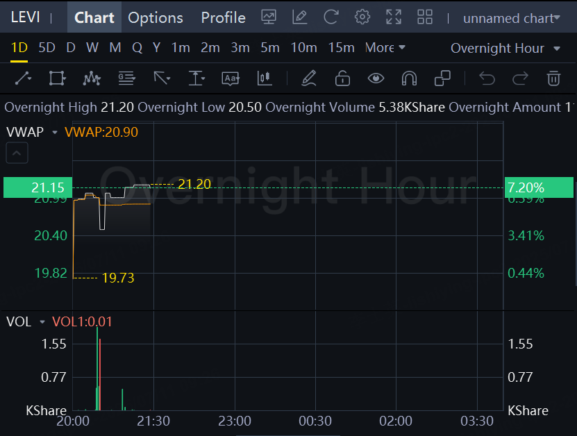 Levi Strauss reported second quarter earnings and revenue ahead of Wall Street estimates, driven by strong demand, and raised its full-year profit outlook, sending its shares up 7.2% in overnight trading.
