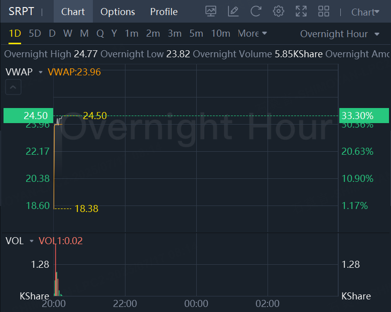 Sarepta Therapeutics shares shot up more than 31% in extended trading, as the company also said its restructuring efforts would reduce annual costs by about $400 million in 2026.