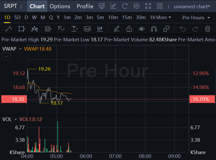 Shares of Sarepta fell about 17% in premarket trading on Friday.