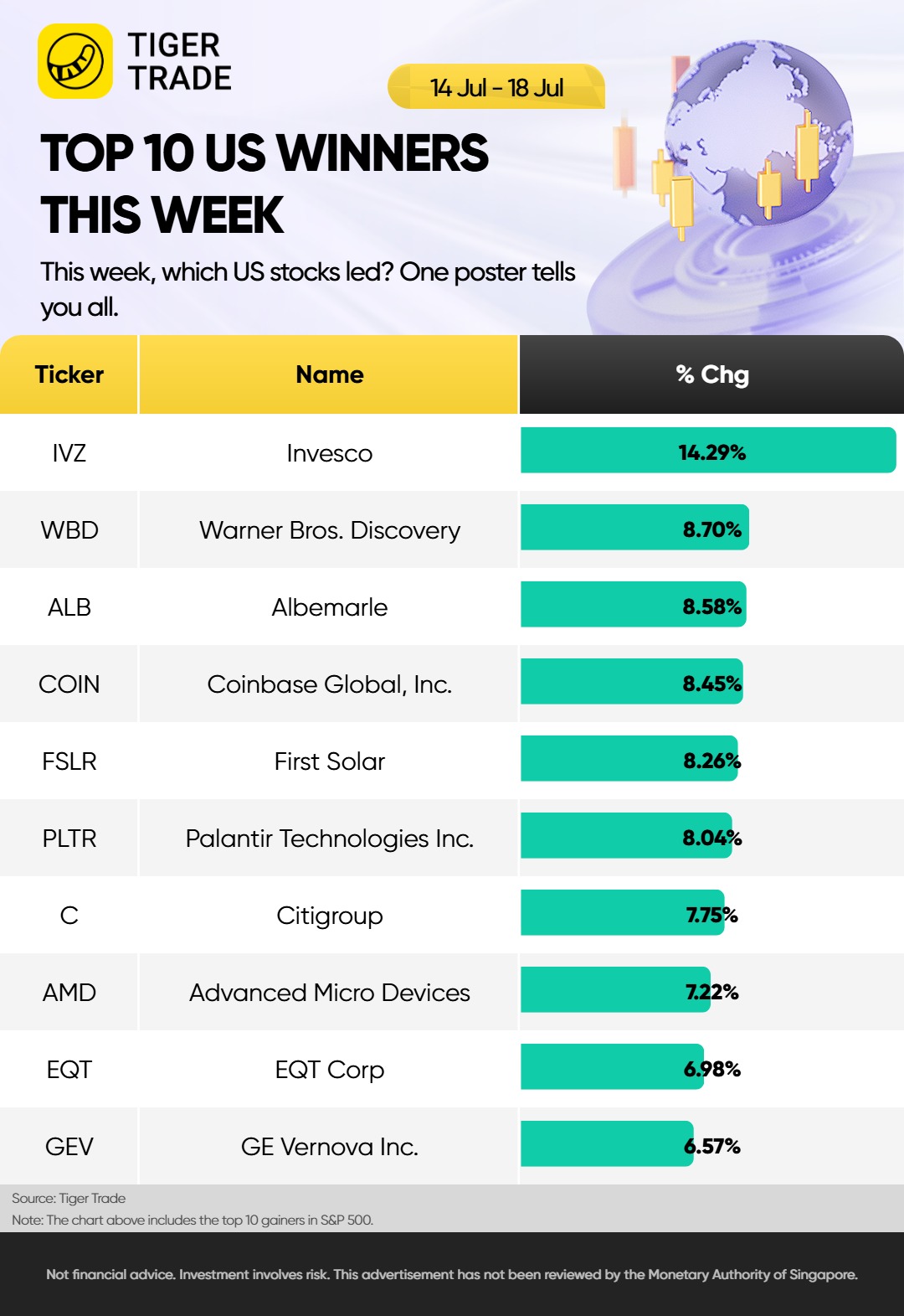 Below are top 10 S&P 500 stock gainers for the week ended Jul 18: