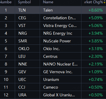 Nuclear Energy Stocks Rise. Talen Up 9%; Constellation Energy And Vistra Up 5%; NRG, NuScale And Oklo Up 3%