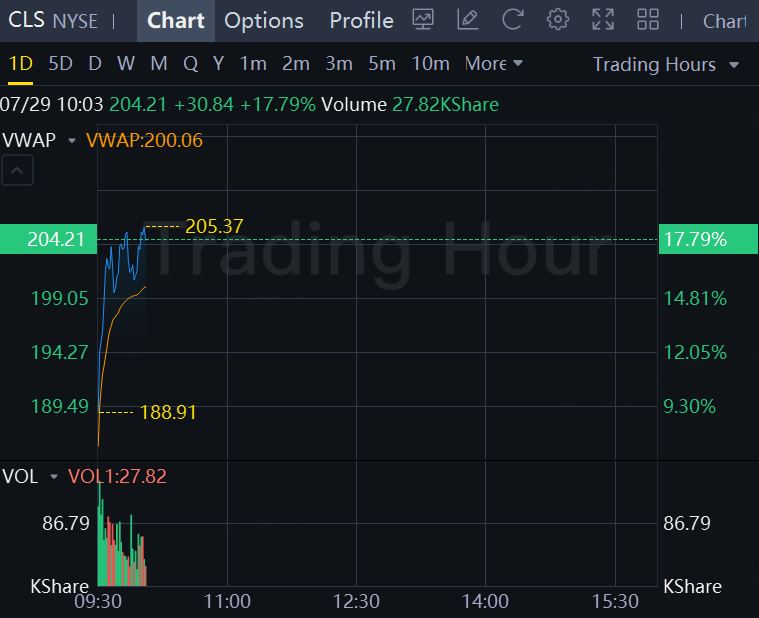 Celestica raised its full-year revenue forecast for the third time in a row as demand grows for its cloud-computing segment. The shares jumped 18% on Tuesday.