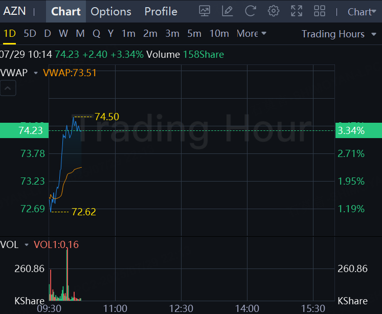 AstraZeneca stock rose more than 3% as it beat second-quarter earnings expectations on Tuesday, helped by strong sales of key cancer, heart and kidney disease drugs, but maintained its full-year forecast as pricing pressures and global trade risks remain challenges.