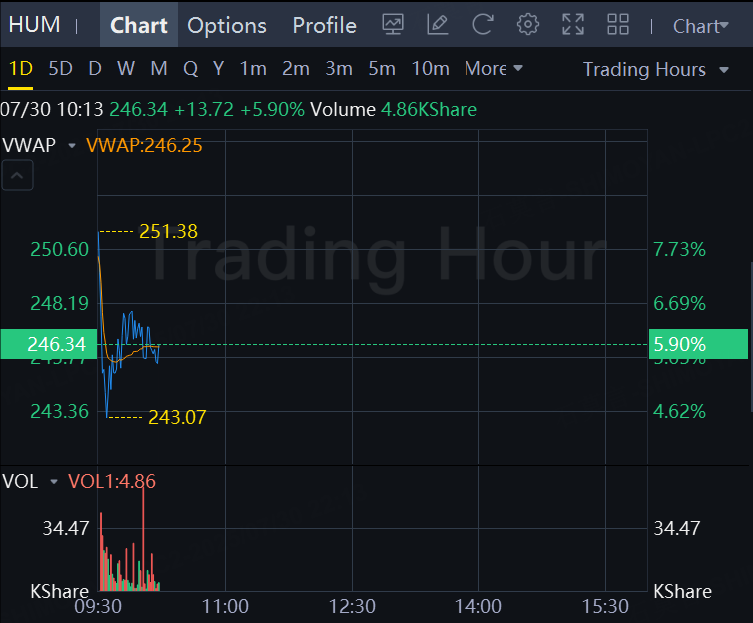 Humana shares rose nearly 6% on Wednesday. Humana raised its annual profit forecast on Wednesday, as the U.S. health insurer bets on its efforts to rein in higher medical costs that have plagued the sector, sending its shares up nearly 5% in premarket trading.