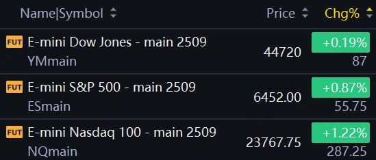 At 8:00 a.m. ET, Dow e-minis were up 87 points, or 0.19%, S&P 500 E-minis were up 55.75 points, or 0.87%, and Nasdaq 100 E-minis were up 287.25 points, or 1.22%.