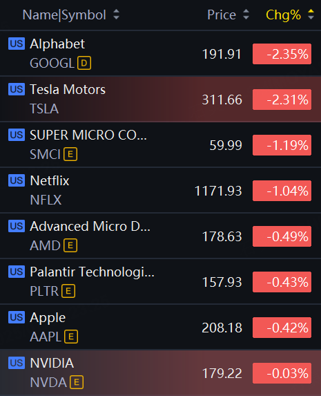 Dow Jones index turned negative while Nasdaq narrowed gains to 0.6%. Alphabet, Tesla fell over 2%; Super Micro, Netflix fell 1%; Nvidia turned negative.