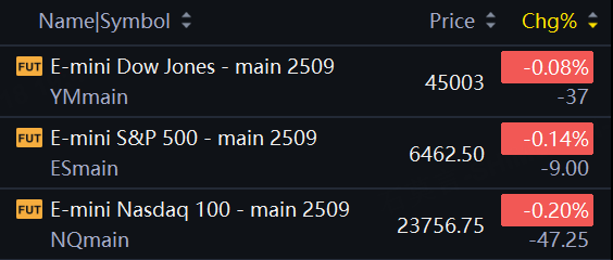 At 7:50 a.m. ET, Dow e-minis were down 37 points, or 0.08%, S&P 500 E-minis were down 9 points, or 0.14%, and Nasdaq 100 E-minis were down 47.25 points, or 0.20%.