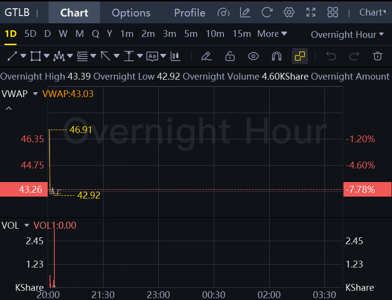 GitLab stock was down nearly 8% in overnight trading. GitLab is looking for third quarter adjusted EPS of between 19 cents and 20 cents, versus the 19 cent estimate, and revenue of $238 million to $239 million, versus the $241.54 million analyst estimate.
