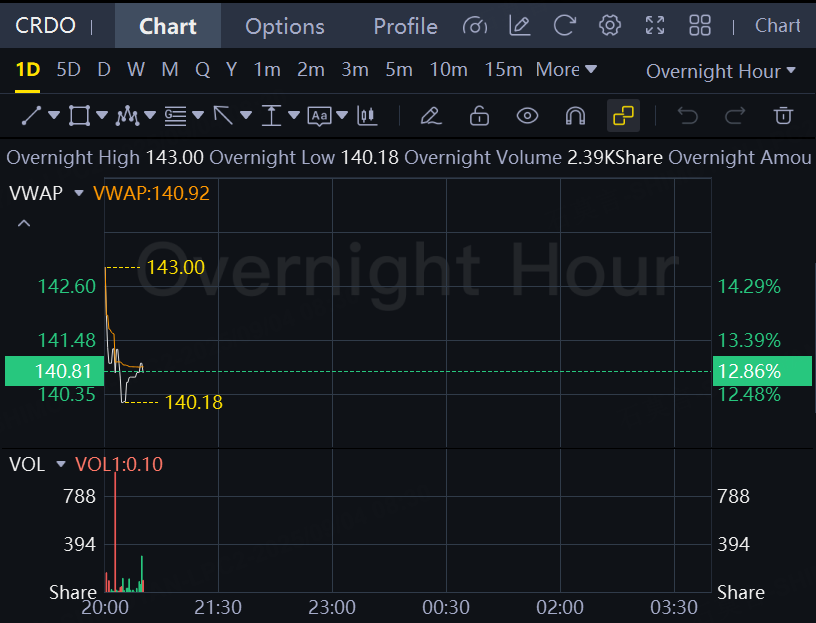 Credo reported better-than-expected earnings results Wednesday afternoon. Its shares were up about 13% in overnight trading.