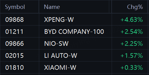 EV stocks rallied in Hong Kong. XPeng rose 5%; BYD rose 3%; NIO and Li Auto rose 2%; XIaomi rose 0.3%.