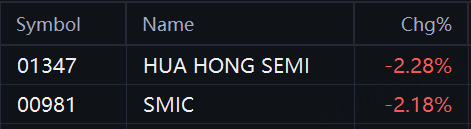 Chip stocks dropped again in Hong Kong. Hua Hong Semiconductor and SMIC fell more than 2%.