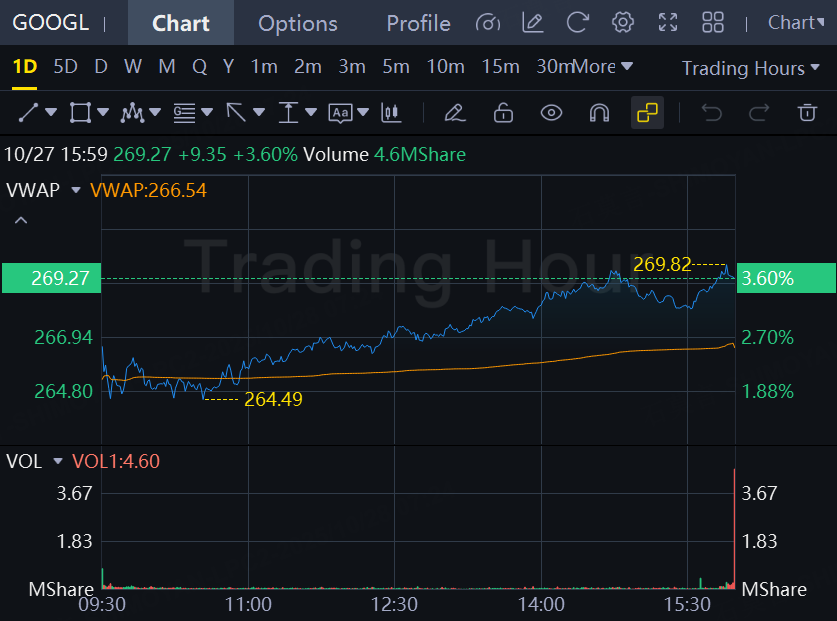 Alphabet shares rose 3.6% to hit a record high on Monday.