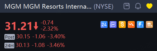 MGM Resorts International missed Wall Street expectations for third-quarter profit on Wednesday, hurt by weak sales at its Las Vegas properties, sending the casino operator's shares down 3.5% in overnight trading.