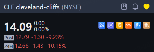 Ceveland-Cliffs shares sank 10.2% in overnight trading.
