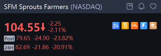 Natural and organic grocery chain Sprouts Farmers tumbled 20.9% in overnight trading after third-quarter same-store sales and revenue fell short of Wall Street projections, according to consensus estimates compiled by FactSet. Fourth-quarter earnings per share and same-store sales guidance also missed expectations.