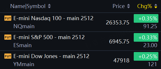 Risk-on sentiment is broadening, with the US equity futures advancing further. Contracts on both the S&P 500 and Nasdaq have gained about 0.3% each.