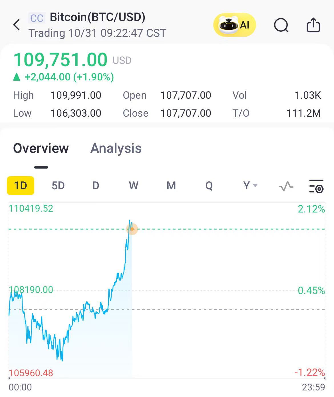 Bitcoin jumped nearly 2% to $109,751 on Friday.