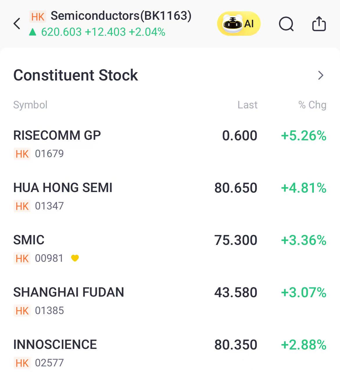 Semiconductor shares rallied in Hong Kong. Hua Hong Semi, Risecomm GP up about 5%; SMIC, Shanghai Fudan, Innoscience up around 3%.