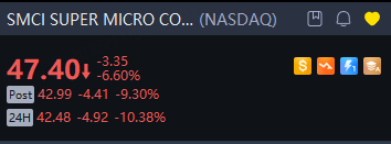 SUPER MICRO COMPUTER INC missed Wall Street estimates for quarterly profit and revenue on Tuesday, hit by a shift in delivery schedules for large artificial intelligence deals, sending the server maker's shares down more than 10% in overnight trading.
