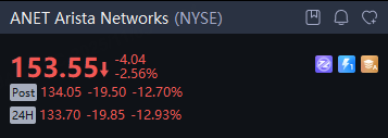 Arista Networks shares plunged 13% in overnight trading after reporting its third quarter 2025 financial results that topped estimates and showed revenue growing 27% year over year.