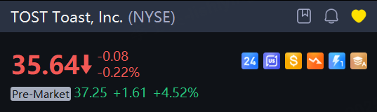 Toast rose 4.5% after beating estimates. Revenue for the quarter came in at $1.63 billion versus the consensus estimate of $1.58 billion.