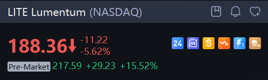 Lumentum shares surged 15.5% in premarket trading on Wednesday after the optical components maker reported strong fiscal first-quarter results and issued guidance that significantly exceeded analyst expectations, driven by robust demand from AI data center applications.