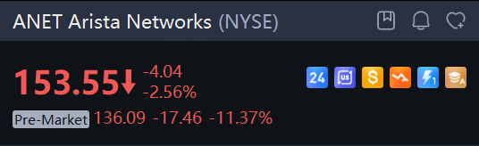 Arista Networks posted higher revenue and profit during the third quarter, but its guidance for the current quarter suggests sales growth will slow to a crawl on a sequential basis. The shares plunged 11.4% in premarket trading on Wednesday.