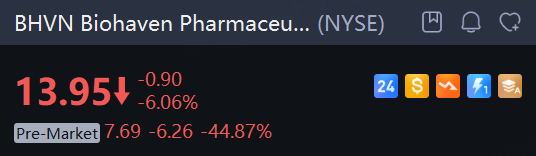Shares of Biohaven plunged 44.9% in the premarket on Wednesday after the company said the U.S. FDA issued a Complete Response Letter in response to its marketing application for its lead asset Vyglxia (troriluzole), rejecting the drug's approval.