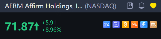 Affirm shares advanced 9% after upwardly revising its guidance for fiscal-year 2026 gross merchandise volume after delivering a double-beat on Q1 earnings and revenue.