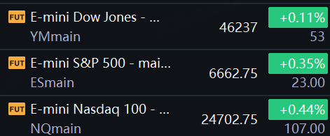 At 07:01 a.m. ET, S&P 500 E-minis were up 23 points, or 0.35%, Nasdaq 100 E-minis were up 107 points, or 0.44%, and Dow E-minis were up 53 points, or 0.11%.