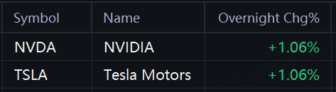 Nvidia and Tesla rebounded 1.1% in overnight trading.
