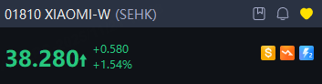 XIAOMI-W stock rose 2% after the company repurchased 13.5 million shares at a price ranging from HK$37.380 to HK$38.100, with a total repurchase amount of HK$508 million.