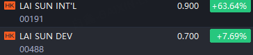 LAI SUN INT'L Int’l shares soared 63% and Lai Sun Dev jumped 8% on negotiation for potential disposal.