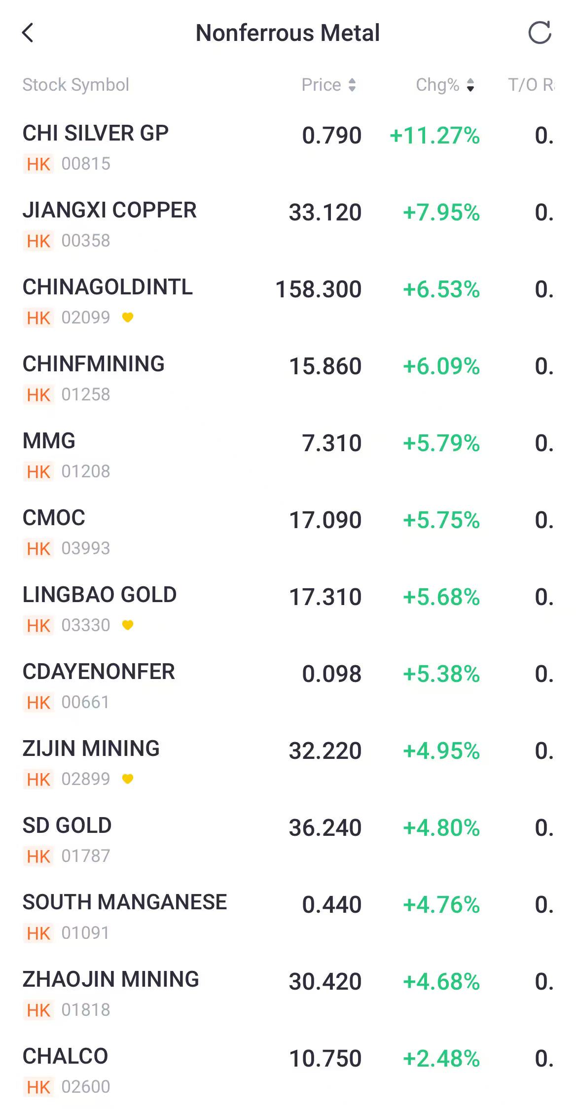 HK Movers | Nonferrous Metals Stocks Shine. Chi Silver up over 11%; Jiangxi Copper up 8%; China Gold Intl, Chifeng Mining up over 6%; Zijin Mining, Lingbao Gold, SD Gold up around 5%.