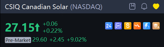 Canadian Solar, a major solar panel manufacturer, is transferring the assets of its Chinese unit to Canadian ownership, to safeguard sales into the US as Washington steps up scrutiny of imports from the Asian nation. Canadian Solar shares jumped 9% in premarket trading.