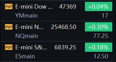 At 7:50 a.m. ET, Dow E-minis were up 17 points, or 0.04%, S&P 500 E-minis were up 12.5 points, or 0.18% and Nasdaq 100 E-minis were up 77.25 points, or 0.30%.
